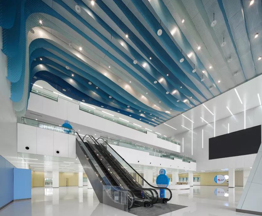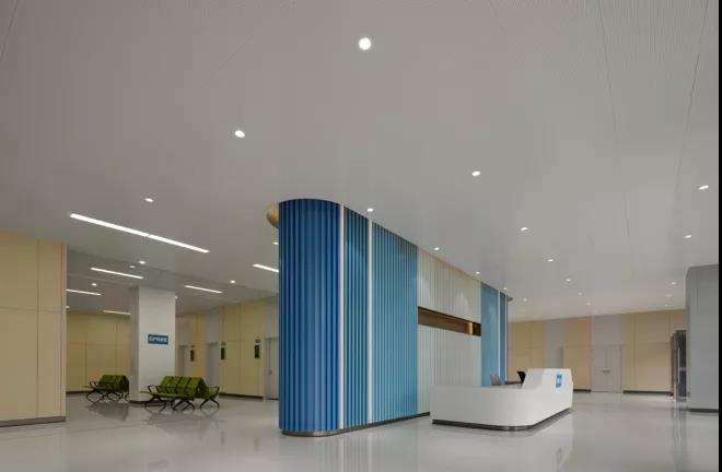 醫(yī)技樓門診空間人流量較大,功能上屬于集約等候、辦理、中轉(zhuǎn)、接待的樞紐性空間,集約滿足未來就醫(yī)功能的信息化體現(xiàn),進(jìn)行人工掛號(hào)+線上自組掛號(hào)系統(tǒng)、互動(dòng)屏幕等點(diǎn)位設(shè)置,在營(yíng)造婦女兒童醫(yī)院氛圍同時(shí),采用簡(jiǎn)潔照明系統(tǒng)和耐久易清潔環(huán)保材料,在醒目多變色彩空間中相對(duì)更加突出簡(jiǎn)潔、白凈,便于識(shí)別。
