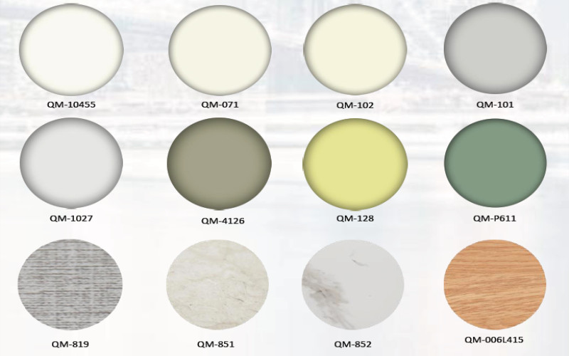 PVC覆膜:經特殊處理的PVC皮膜經高溫可覆在金屬鋼板上,使產品具有良好的防蝕性、防酸堿、耐化學醫藥性等特征,且皮膜與金屬鋼板隔絕空氣和水分,具有防霉作用。(可定制紋理)