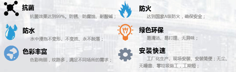 因此在選用墻板、天花等裝飾材料時就必須考慮產品的抗菌、抗霉、防火、防水抗撞擊等綜合性能。